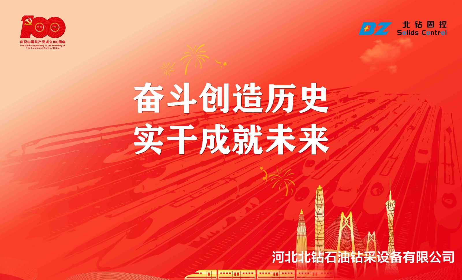 經(jīng)歷一百載苦難,不動不搖!奮斗一百載風雨,依舊輝煌!承載一百載精神,立足全球!值此中國共產(chǎn)黨百年華誕之際,北鉆固控公司全體員工熱烈慶祝中國共產(chǎn)黨建黨100周年,祝福祖國繁榮昌盛! 回首這近一個世紀的風雨歷程,我們黨從血雨腥風中走來,從槍林彈雨中走來,經(jīng)歷了無數(shù)血與火的洗禮,從小到大,由弱變強,帶領(lǐng)中華各族兒女從一個勝利走向另一個勝利,從一個輝煌邁向另一個輝煌!從站起來到富起來,從富起來到強起來,一步一步向前推進!經(jīng)濟建設(shè)蓬勃發(fā)展,人民安居樂業(yè),國際地位空前提高,一片欣欣向榮!一百年來,黨團結(jié)帶領(lǐng)中國人民艱苦探索、頑強拼搏,從根本上改變了中國人民和中華民族的前途和命運! 在中國共產(chǎn)黨的正確領(lǐng)導下,各行各業(yè)都取得了舉世矚目的成就!今天,我們正處于近代以來的發(fā)展時期,但也正面臨世界百年未有之大變局。北鉆固控作為中國能源裝備制造業(yè)內(nèi)“智能固控和分離設(shè)備、節(jié)能環(huán)保設(shè)備”領(lǐng)域的一份子,唯有保持銳意進取、永不懈怠的精神狀態(tài)和敢闖敢干的奮斗姿態(tài),腳踏實地,不忘初心,堅持黨的領(lǐng)導,跟黨走,方能創(chuàng)造無愧于偉大新時代的新輝煌!